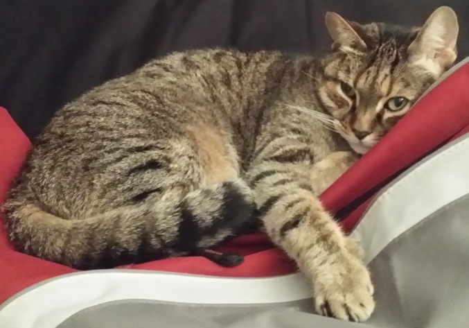 Lucio: giovane gatto tigrato dalle zampe lunghe da ghepardo ma dolcissimo.