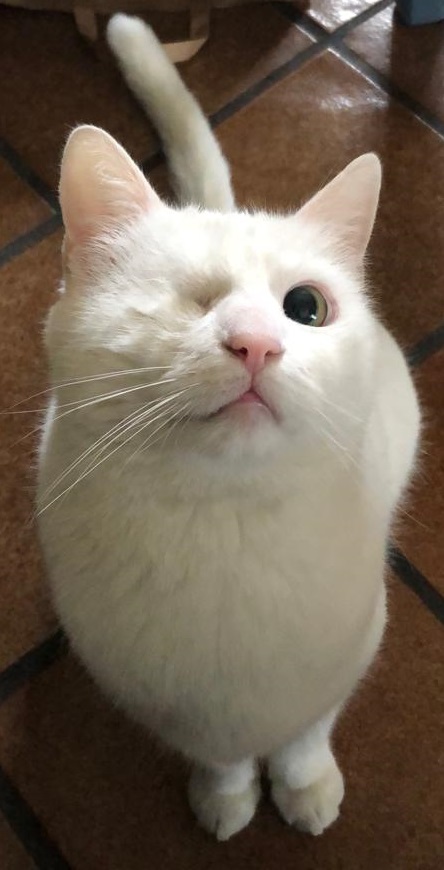 Gatta femmina di 8 mesi, a Civezzano, sterilizzata e provvista di chip. Nina, occhi azzurri e pelo totalmente bianco e folto, 8 mesi, sterilizzata, chip. Contattare Annalisa tel 349.8689748 o Tullio 349.6360238. email: